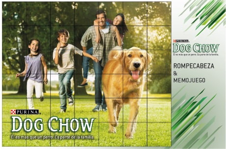 La campaña contó con diferentes piezas como rompecabezas, blocs de notas, juegos de memoria, carteles promocionales, pegatinas y dog papers para la familia.