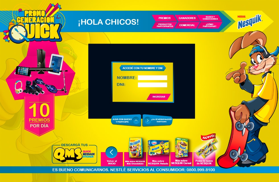 Esta fue una página web creada por la Agencia de Publicidad POP 70 para una promoción y campaña de Nestlé Nesquik en el año 2013. La promoción finaliza, por lo que la página web no está disponible ahora.